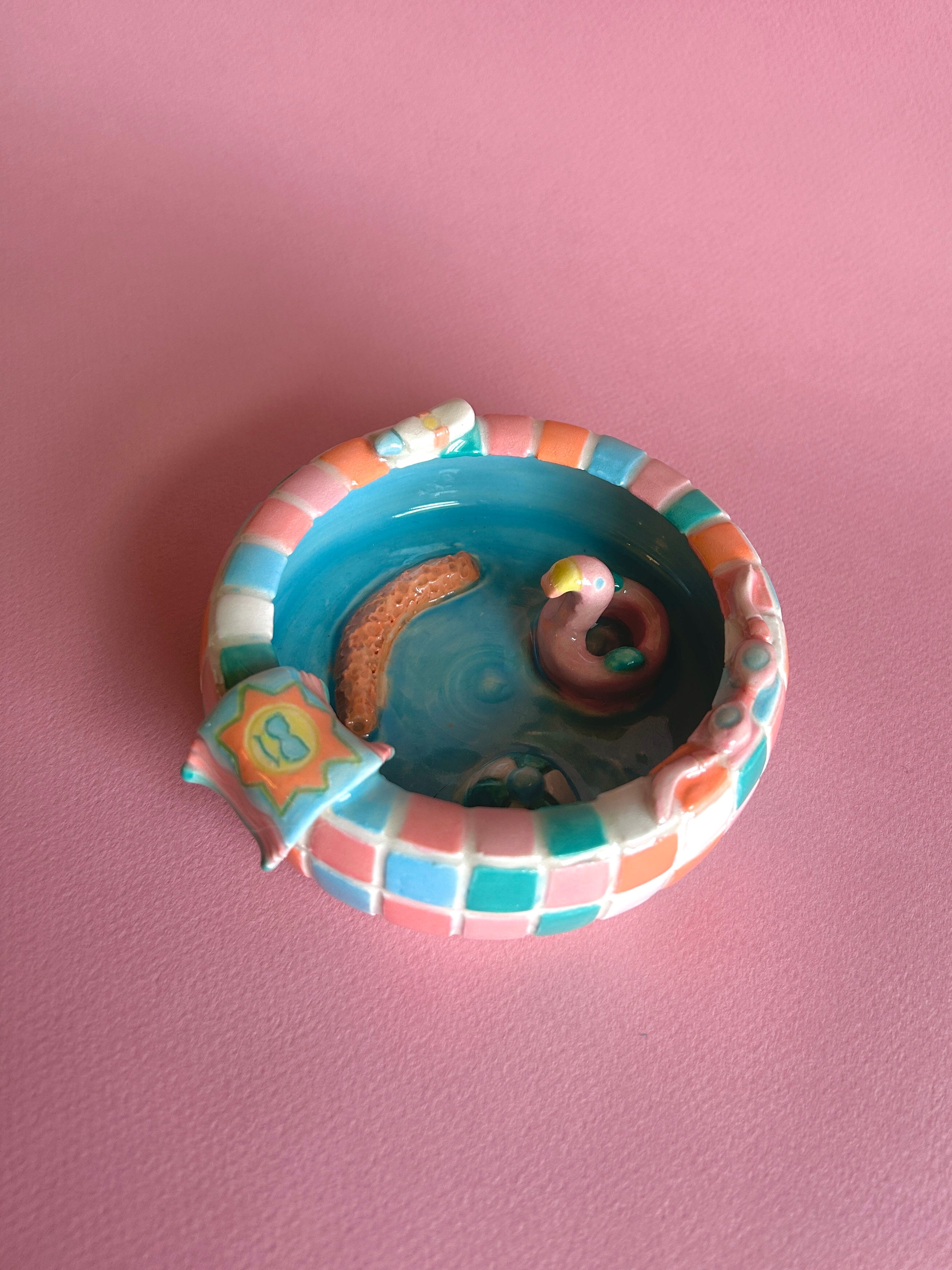 Swimming Pool Trinket Dish with Flamingo Floatie