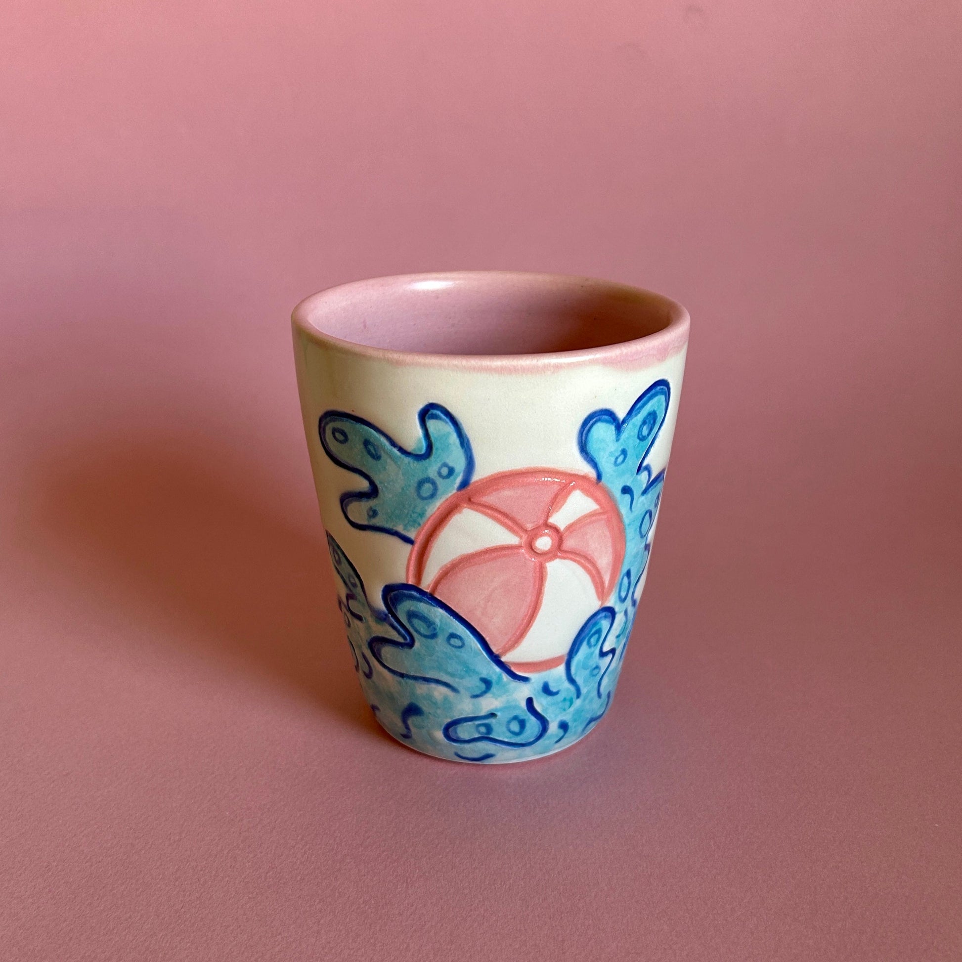 Imagine yourself poolside, warm sunbeams shining upon you, with a cold drink in your hand. Drinking out of this cup can help you imagine that reality. Features designs of splashing in the pool with a float and beach ball.